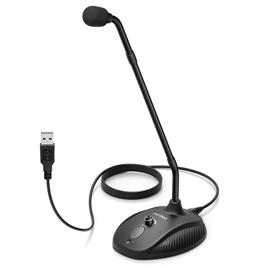 If you don’t want to use a handheld microphone or wear a headset, a desktop microphone is an option. A gooseneck USB microphone is ideal. It should be arranged ergonomically so that the microphone is close to your mouth while dictating.