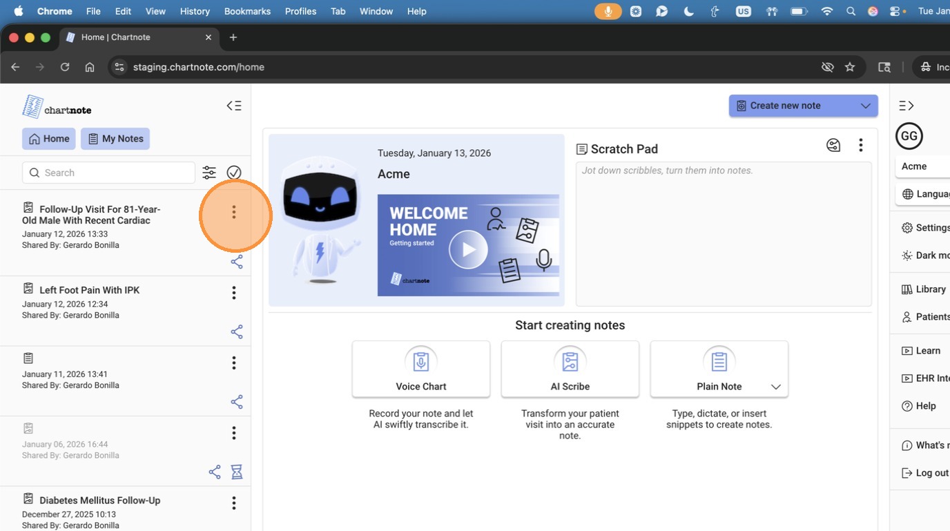 2. First log into Chartnote Home.