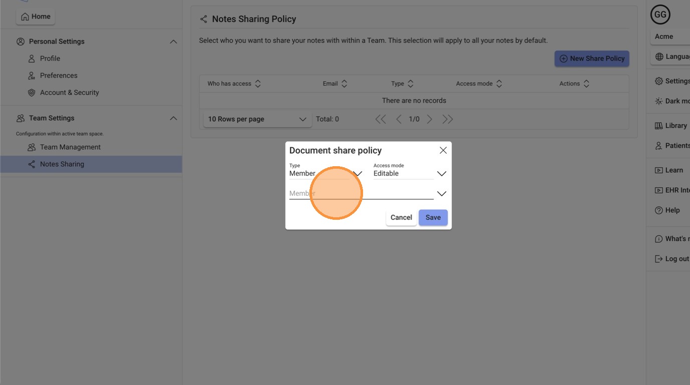 1. When you're in a team context. Your notes can be shared. But you have to do it one by one. If you want to automatically share all your notes, either with the whole team, with a specific group within your team, or a specific member of the team you can set a Share Policy.