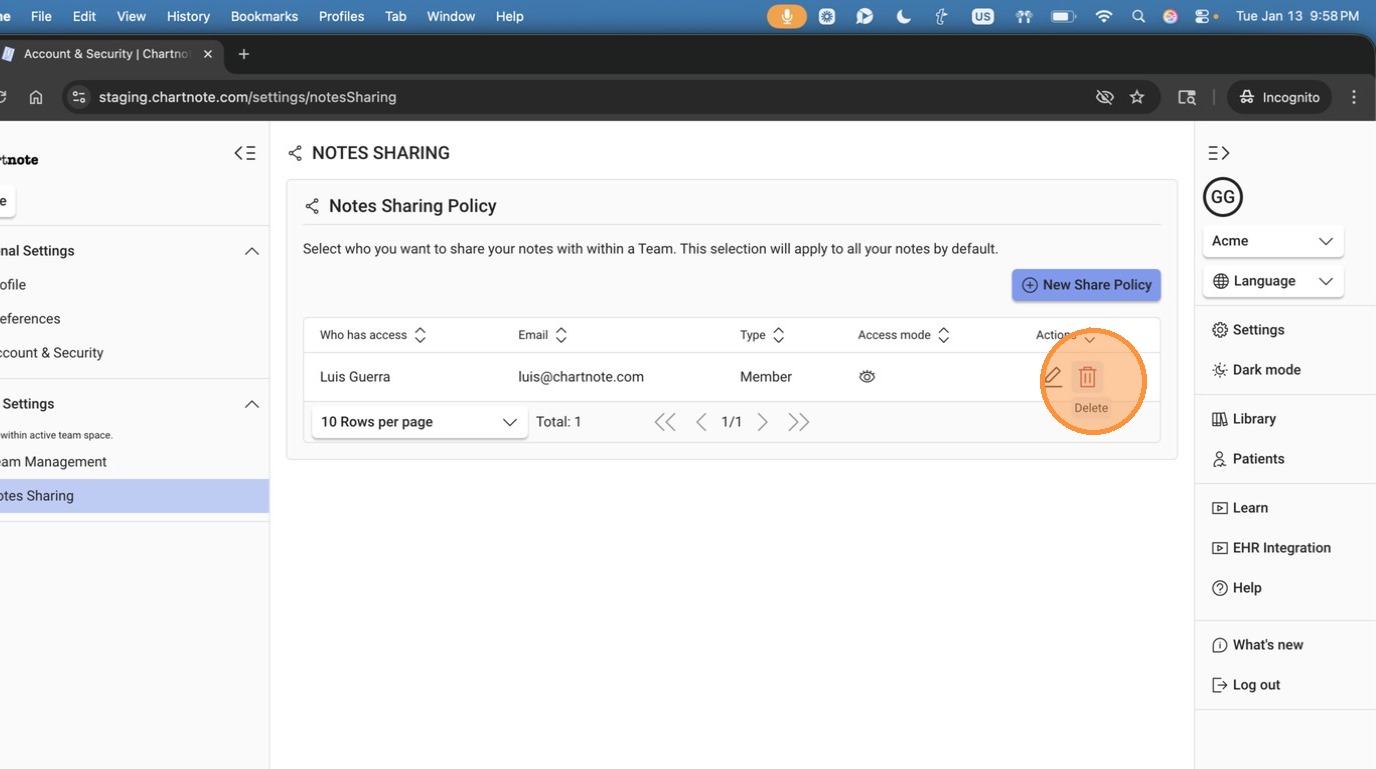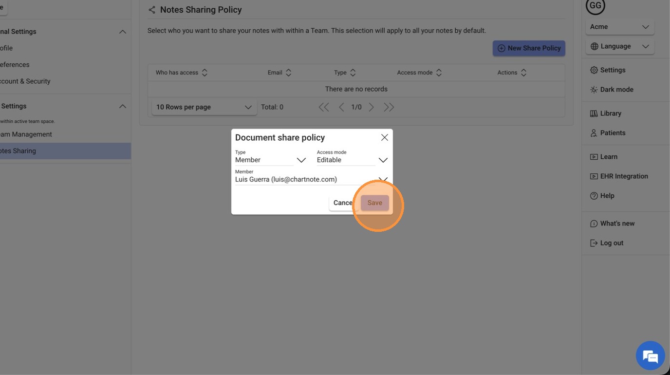 How to Share a Note with your Team in Chartnote